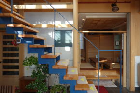 ■立体的にワンルーム状の空間を展開させた家: ⇒ プライバシーの最小限の部分だけを密閉または視覚的配慮を行ない、他は可能な限りオープン、またはsemiオープンに暮らせる家である。