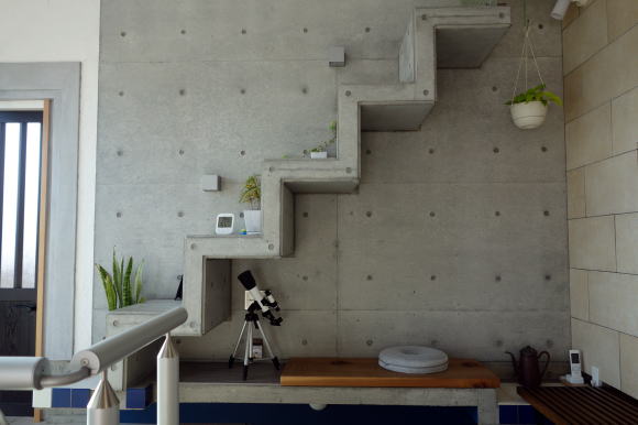 ■「面白い階段」のしつらえ; 「そこは何がある特殊な舞台のような場所、何か晴れがましい場所、何か日常的でない形を持った場所であることを意識して設計した方が、それを登り降りする人間達を楽しくさせるようだ。下から見上げた時の浮遊の感覚、見下ろしながら降りてくる時の不思議な落ち着きと、駆け登る時の高揚感。」 ~ 宮脇 壇~