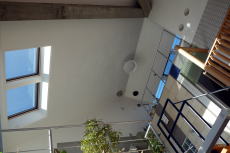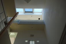 ②さらに床下から1Fインナーテラス垂れ壁背後の通気口及び1F事務所南側天井ガラリ通気口 → 2F床通気ガラリ・「収納」スペース床の通気ガラリなどを経由しながら、2Fへ自然給気していく「内循環」の二つの経路を使う。